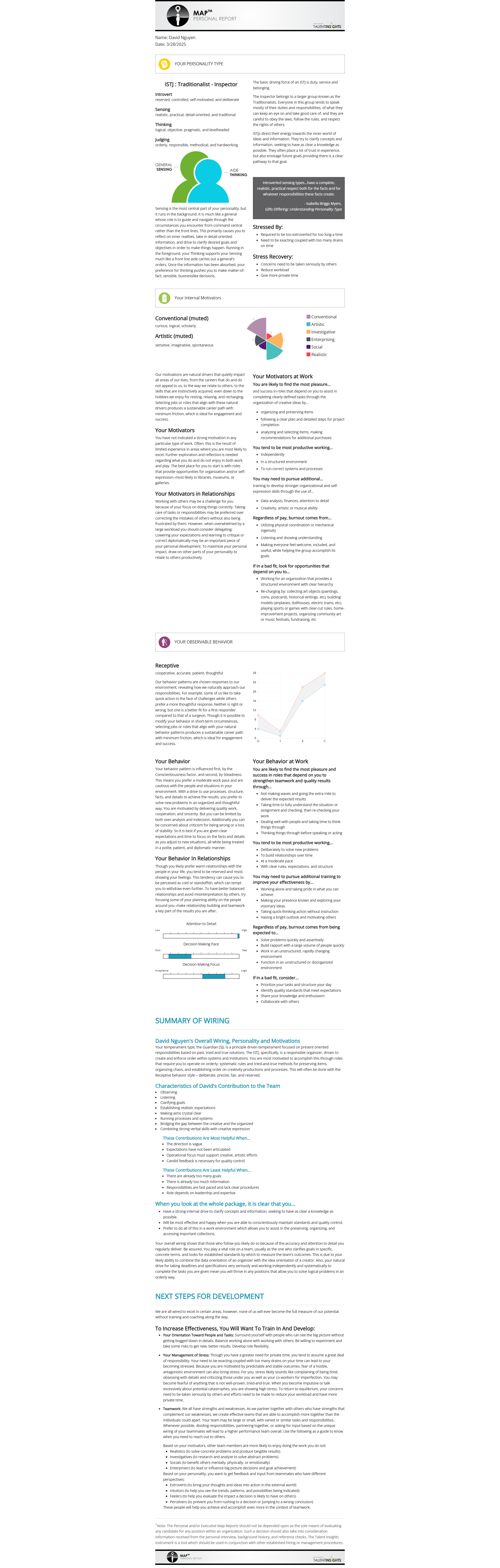 The Personal Report delves deep into your assessment results, offering a detailed exploration of your personality, motivations, and behaviors. This comprehensive guide aids in understanding: